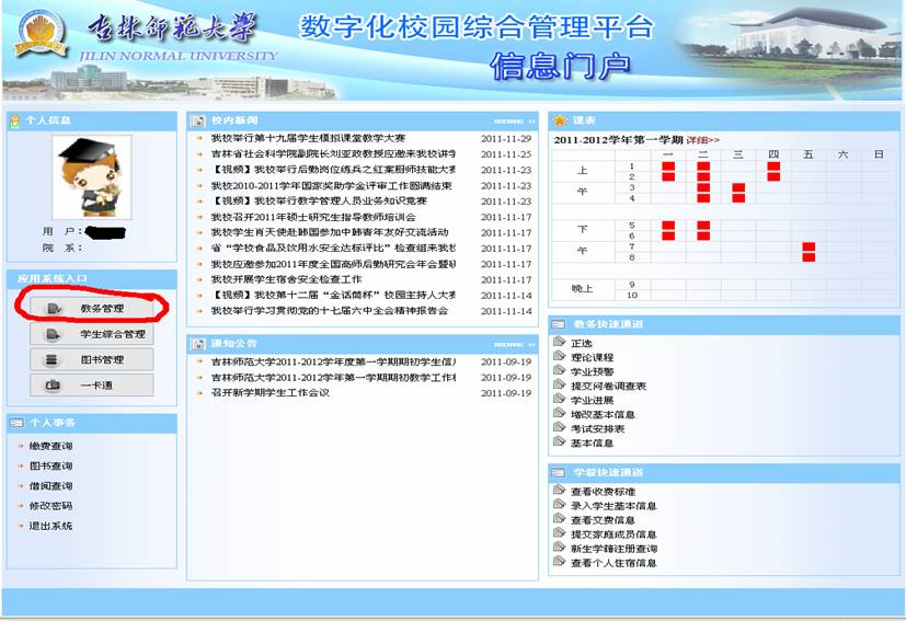 然后选择教学管理按钮,进入教务管理系统,如图3所示