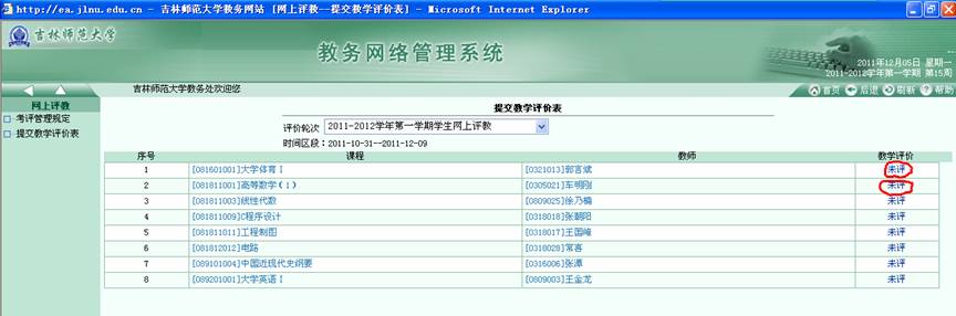 点击红色圈内的“未评”按钮,就可以对某名教师进行评价。如图6所示。