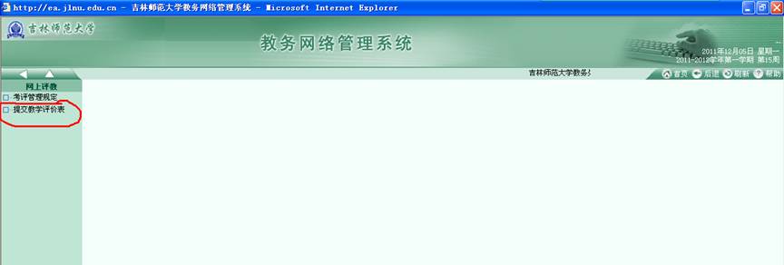 选择网上评教按钮,进行网上评教环节。然后点击红圈内的提交教学评价表。