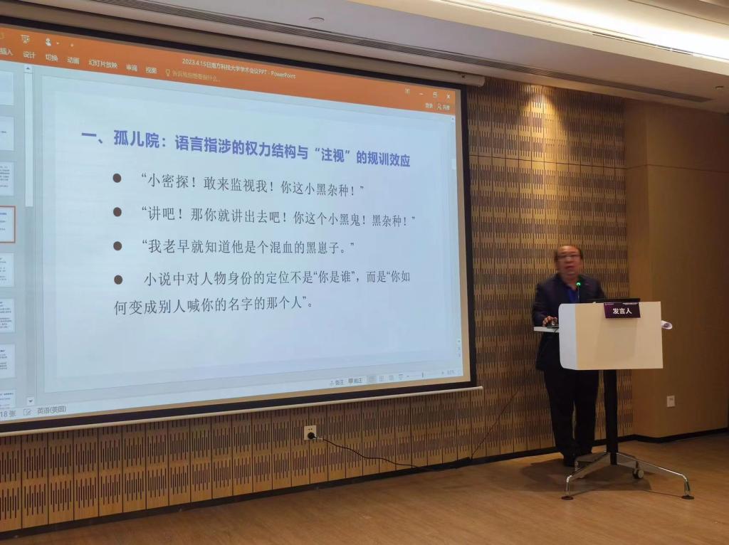 此次高峰论坛由中国高校外语学科发展联盟主办,南方科技大学社会科学高等研究院、南开大学中外文明交叉科学中心以及南开大学汉语言文化学院联合承办。论坛围绕“全球史与世界文学关系研究”“文明进程与区域国别文学研究”“文学翻译与中外文学”“文化传统的互释”“比较文学视阈中的中外文学经典研究”“外国文学中历史与文化的美学再现”“中外文学经典的传播与接受”等议题展开学术交流与讨论。我院王钢副教授在会上做了题为“论《八月之光》的种族身份建构”的学术发言汇报。