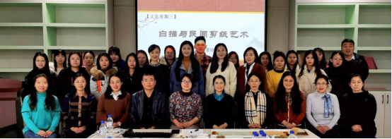 2021年11月17日,文学院在双实大楼718非遗传承工作室开展了“文化星期三”活动,四平市政协书画院院士董晓应邀作了题为《白描与民间剪纸艺术》与《民俗剪纸构图样式研究》的两场学术报告。文学院党委书记宋大伟、院长肖振宇及吉林省非遗传承基地成员出席了报告会,2021级汉语国际教育专业全体研究生参加了本次报告会。
