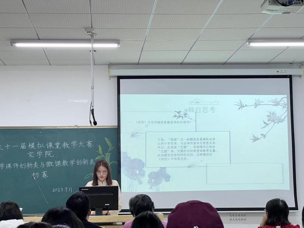 2023年9月5日至9月11日,文学院成功举办了吉林太阳成集团tyc122cc入口第三十一届模拟课堂大赛初赛。大赛全面落实深化创新创造教育改革、加强师范生创新创造教育目标,由文学院教师竞赛指导团队组织开展了教学设计创新类、教学课件创新类、微课教学创新类三个赛道的比赛。
