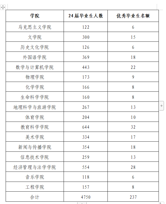 三、各学院2024届优秀毕业生评选名额分配表