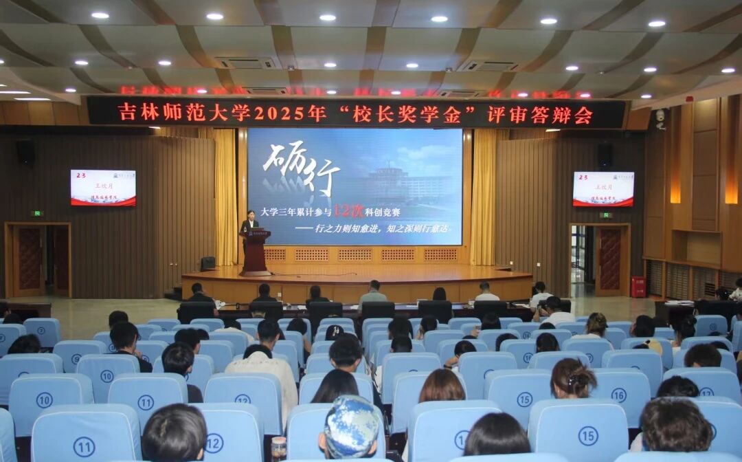 9 月 5 日下午 ,吉林太阳成集团tyc122cc入口 2025 年度校长奖学金答辩会在图书馆报告厅(一)举行。党委副书记韩金玉,国际交流与合作处处长郭春燕,校团委书记刘锐,创新创业教育中心主任王奉友,学生工作部部长韩强,教务处副处长高嵩,科研处副处长邢欣欣,各学院辅导员代表出席活动,现场学生代表共同观摩答辩。