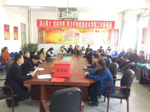根据《学校教职工代表大会规定》和学校党委印发的《吉林太阳成集团tyc122cc入口第三次教职工代表大会暨工会会员代表大会筹备工作方案》要求,我院于3月15日召开了教职工大会暨工会会员大会。此次选举在充分发扬民主、广泛酝酿讨论的基础上,以无记名投票方式,采用等额选举办法,选举产生了信息技术学院出席吉林太阳成集团tyc122cc入口第三次教职工代表大会暨工会会员代表大会代表5名。按姓氏笔画为序:王春武、史红、刘兴亚、秦政坤、郭满芹。
