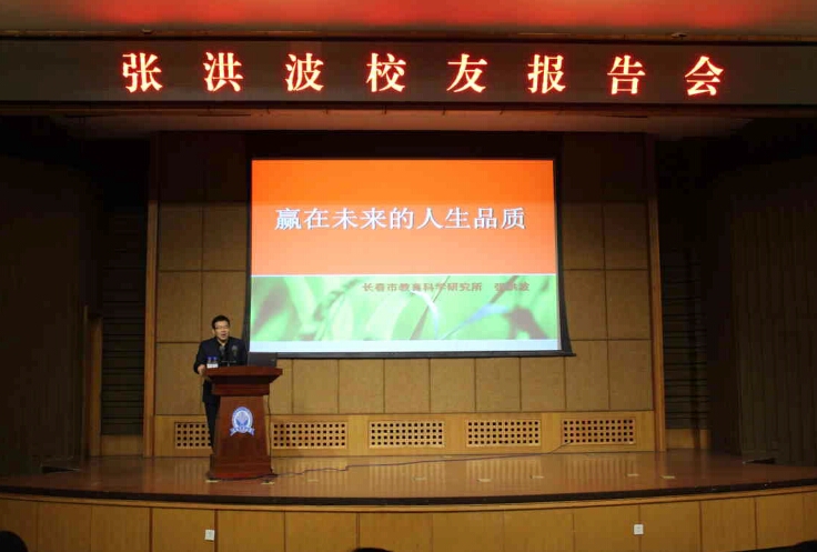 20171115日,物理学院开展百名校友进校园活动,邀请物理学院87届毕业生张洪波老师在图书馆报告厅进行了赢在未来的人生品质主题报告会。张洪波现任长春市教育科学研究所所长,是吉林省特级教师,长春市十佳教师,长春市第四批有突出贡献专家。报告会由物理学院党总支书记宋大伟主持。学生工作部部长张洪峰,物理学院院长刘惠莲和物理学院部分教师及全体同学聆听了本次报告。